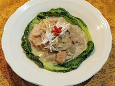 上から乗せたクコは「肺に潤いを補う」働きが期待でき、ちんげんさいは「身体に潤いを補って乾燥を鎮め、便通を改善する」働きが期待できるので、食材のどれもが肺・大腸のコンディションに働きかけてくれるレシピです。