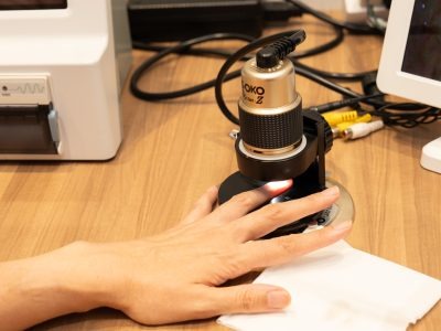 ところが、「ファンケル ヘルス スタジオ」はもっと先をいっていた。観察は指の爪の甘皮部分を拡大することで行います。