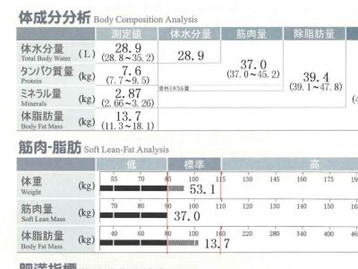 普段使っている体重計型よりもはるかに緻密なボディスキャンです。体脂肪率も普段見ているものと少し違います。