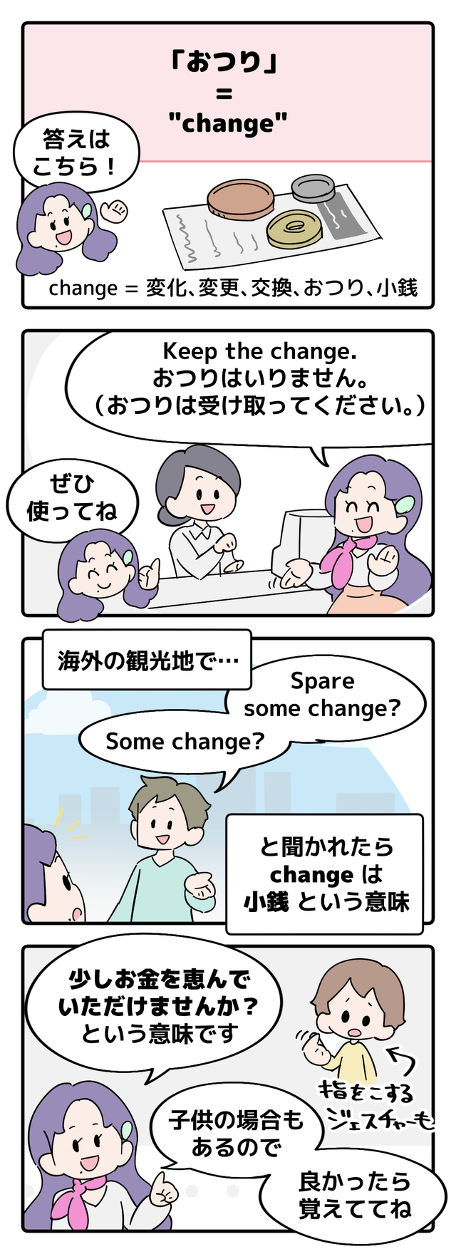 「英語嫌いな日本人をなくしたい!」海外生活や添乗員経験、そしてバイリンガル子育て中の英会話講師・Mrs.服部が、身近な英語表現を漫画&クイズ形式でお届け! 「間違ったら恥ずかしい」じゃなく「伝わればOK」。使えるフレーズをマンガで学びましょう!