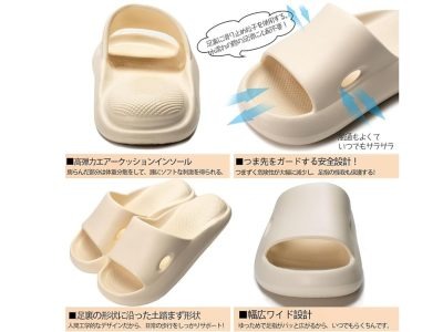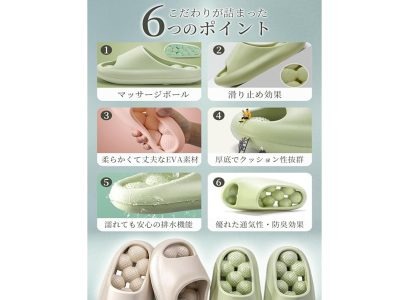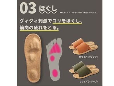 「リカバリースリッパ」は「足の疲労回復」を目的とした室内用の履きもの。歩行時の衝撃を吸収したり、足裏のツボを刺激したり。ソール部分のクッション性や形状に、工夫が詰まっています。