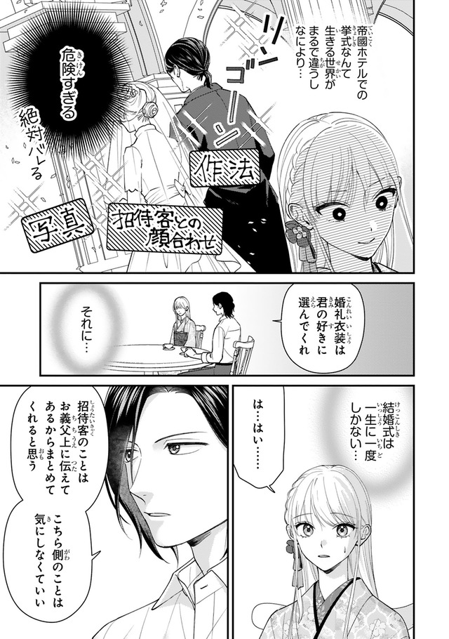 和モダンな世界を舞台にした秘密のロマンス! 家族経営のカフェーが全焼し、窮地に立たされた栗橋光。そんなとき、成金の資産家・剣菱家から、駆け落ちした一人娘・芳子として、華族である黒田家の嫡男・靖親の婚約者のフリをしてほしいと頼まれる。光は家族のために、靖親の婚約者としていっしょに暮らしはじめるが…。「第1回フレックスコミックス漫画原作大賞」金賞を受賞した極上のラブストーリーをお楽しみください!