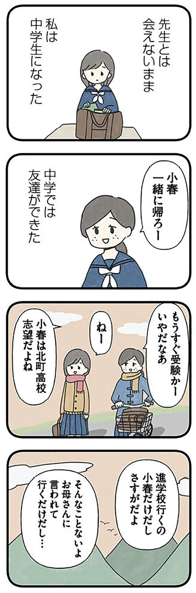 ある日、娘の成績が落ちていることに気付いた真美は、塾に通わせることに。小春を連れて塾へ行くと、娘の小学生時代の副担任・森先生に再会する。