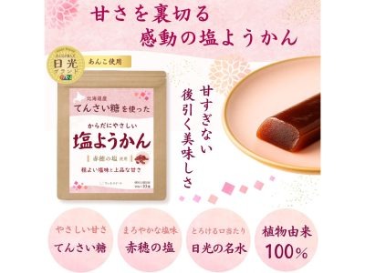 ●【塩ようかん】てんさい糖を使用したおだやかな甘味が特徴。仕事やスポーツで疲れたとき、手軽な「リカバリー食」にも!