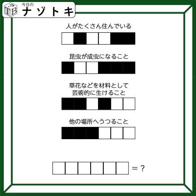 すると、上から「都会(とかい)」「羽化(うか)」「華道(かどう)」「移動(いどう)」となります。