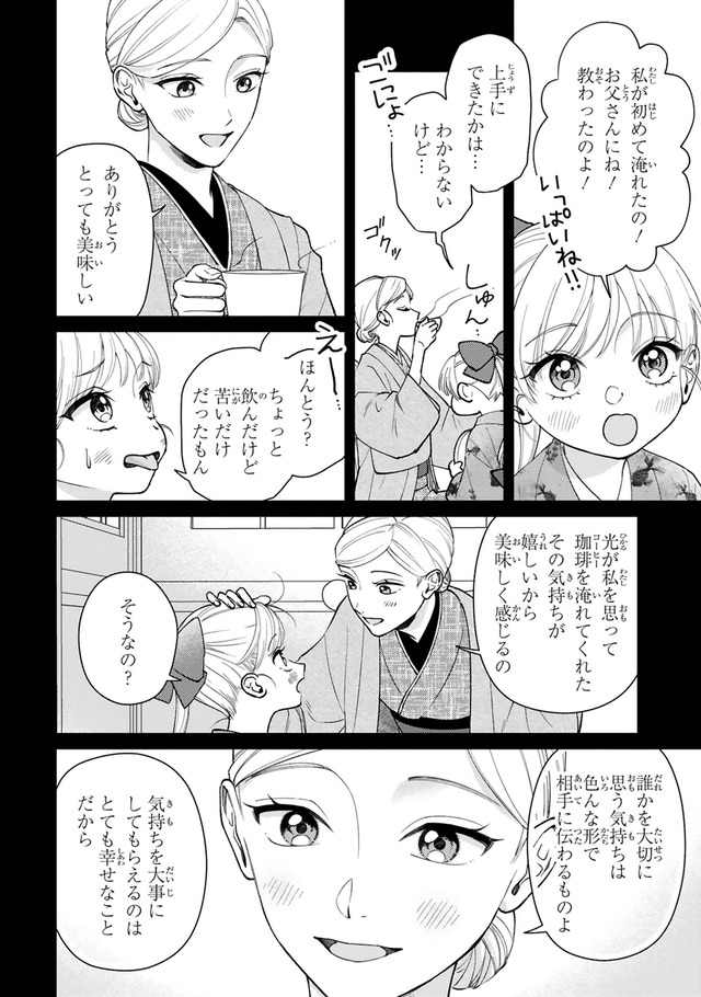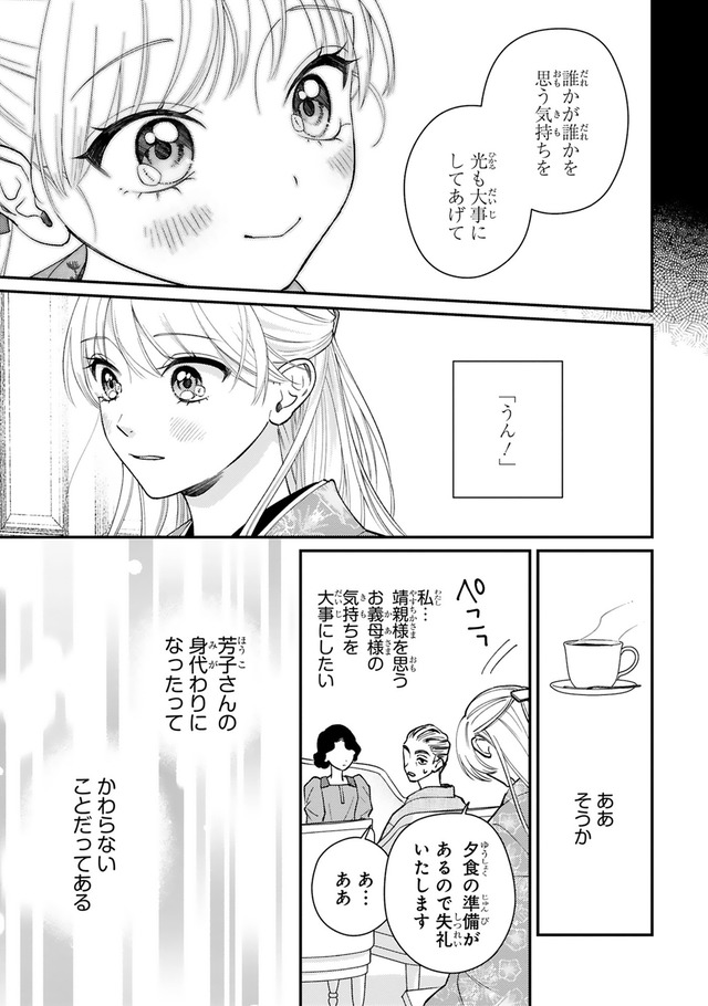 和モダンな世界を舞台にした秘密のロマンス! 家族経営のカフェーが全焼し、窮地に立たされた栗橋光。そんなとき、成金の資産家・剣菱家から、駆け落ちした一人娘・芳子として、華族である黒田家の嫡男・靖親の婚約者のフリをしてほしいと頼まれる。光は家族のために、靖親の婚約者としていっしょに暮らしはじめるが…。「第1回フレックスコミックス漫画原作大賞」金賞を受賞した極上のラブストーリーをお楽しみください!