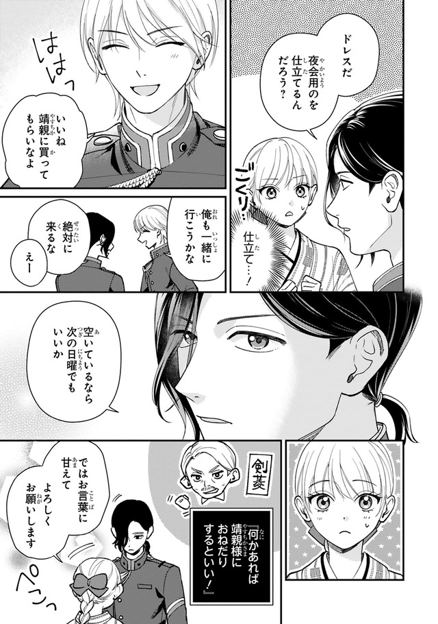 和モダンな世界を舞台にした秘密のロマンス! 家族経営のカフェーが全焼し、窮地に立たされた栗橋光。そんなとき、成金の資産家・剣菱家から、駆け落ちした一人娘・芳子として、華族である黒田家の嫡男・靖親の婚約者のフリをしてほしいと頼まれる。光は家族のために、靖親の婚約者としていっしょに暮らしはじめるが…。「第1回フレックスコミックス漫画原作大賞」金賞を受賞した極上のラブストーリーをお楽しみください!