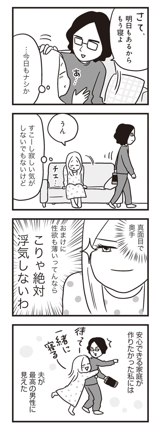 だが、夫の鞄から精力剤と避妊具を発見。問い詰めていくと夫の本性が発覚し…。