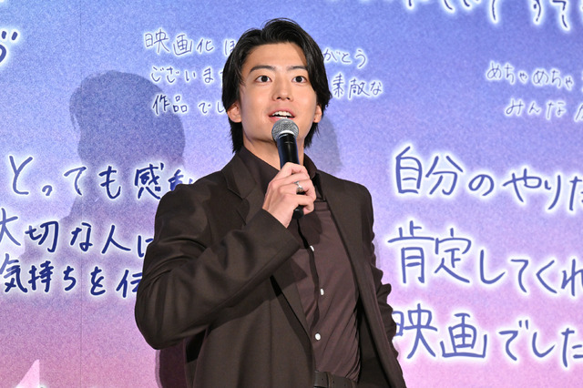 本作は映画公開に先駆けて、全国で約2万人のファンに向けて、各地で試写会を実施。舞台上にはそこで寄せられた感想の数々が大きく表示される中、當真は「泣いたということをたくさん言っていただけていることが嬉しいですし、幅広い世代の方にこの作品が届いていることが実感できますね」と、心温まる反響への感謝を語っていた。