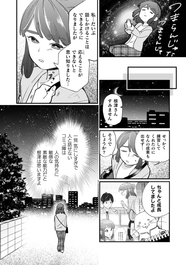 思わず「コミュ障を治したい」と答えた小宮さんは、根津さんの助言のおかげで、徐々に他人に話しかけるようになる…。