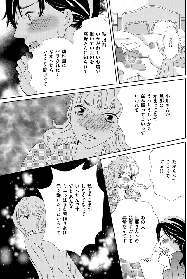 牽制しつつも夫は絶対自分を裏切らないと信じる晴香だったが、意外な人物が夫を略奪しようとしていた──。