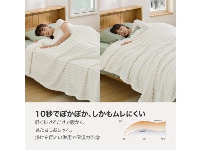 高密度の超極細繊維を厳選し、とろけるやわらかさ。独自の「立体ストライプ」が効率よく空気を循環させて、あっという間にぽかぽか♪