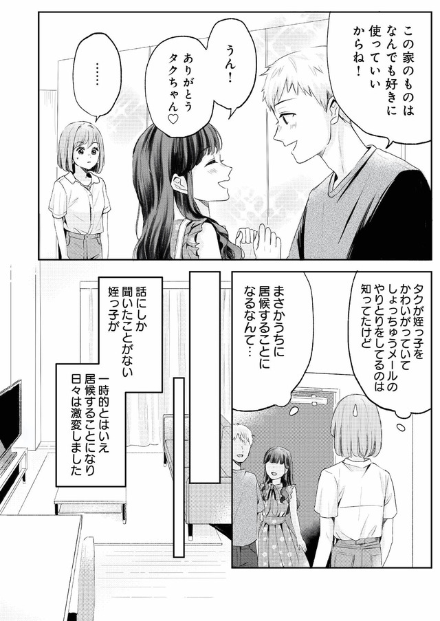そして突然姪っ子が居候発言!しぶしぶ了承したものの、明らかに2人の距離感がおかしい…妻が隣に居ても人前でイチャイチャして、妻がいないかのように2人だけで盛り上がる。