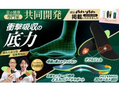 腰痛が気になる方に! 靴の中の足位置をサポートし、着地した時の衝撃を吸収。腰に伝わるストレスを軽減するインソール