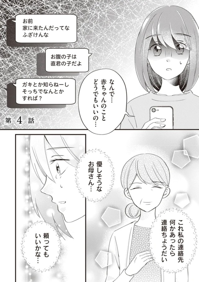 不安で押しつぶされそうな時に優しい義母の言葉に救われ、子どもを産むと決めた亜希だが、直哉の身勝手な行動に振り回されて……。