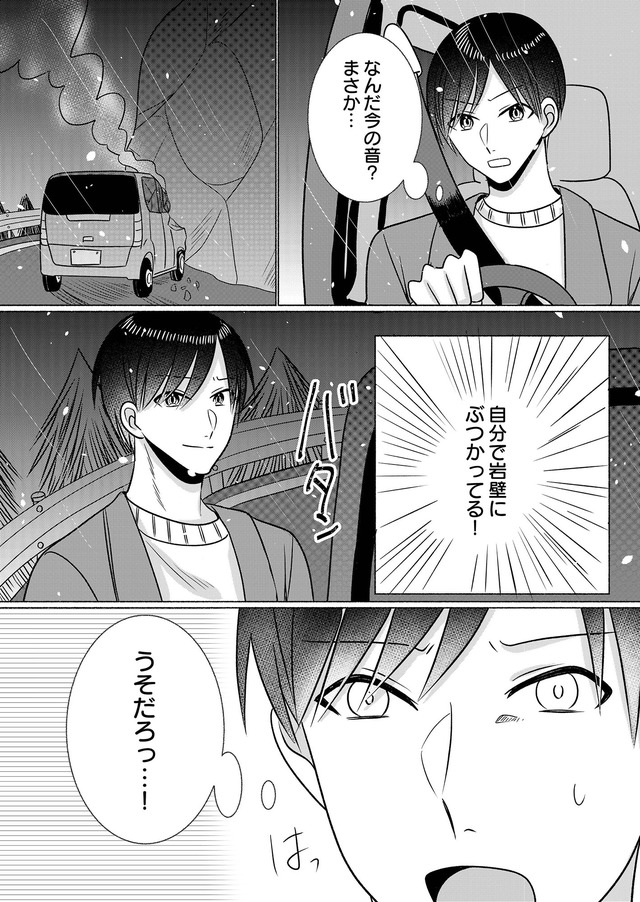 夫の浮気が確信に変わった妻・咲子は、無我夢中で車を走らせるが、カーブを曲がり切れず岩壁にぶつかてしまう。