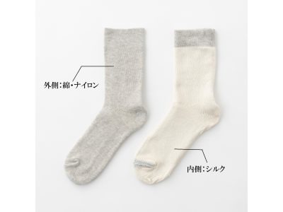 【極暖シルク靴下】なんと「足元温度8.4上昇」! 1枚で2枚分の暖かさを実感できる靴下。内側のシルクが「足汗」を吸って「極暖シルク」を発熱させ、外側の綿で保温します