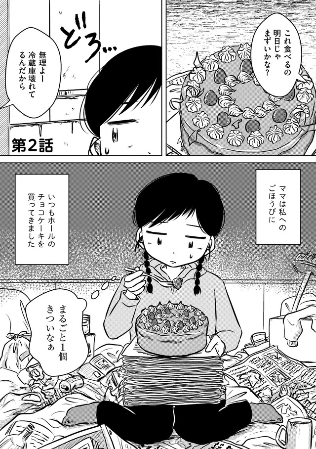都心の一等地、家賃18.5万のマンション。トイレは7年間壊れたまま、まな板や包丁は害虫の通り道。やがて「パパ」は来なくなり、私は「美しいママ」とふたりきりになった。
