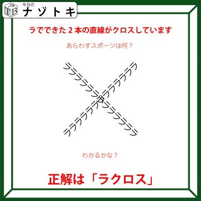 ここから連想されるイラストは何でしょうか?「ラ」を「クロス」しているということ。そうです!「ラクロス」です。というわけで正解は「ラクロス」でした。
