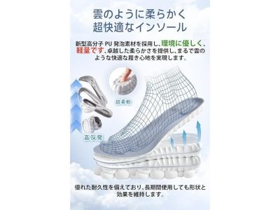 普通のインソールとの違いは、「衝撃を吸収して足腰の負担を軽減」「長時間の立ち仕事や歩行でも疲れづらく」するための技術が詰まっている点。