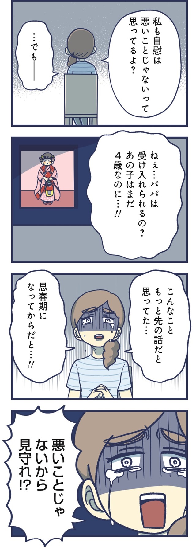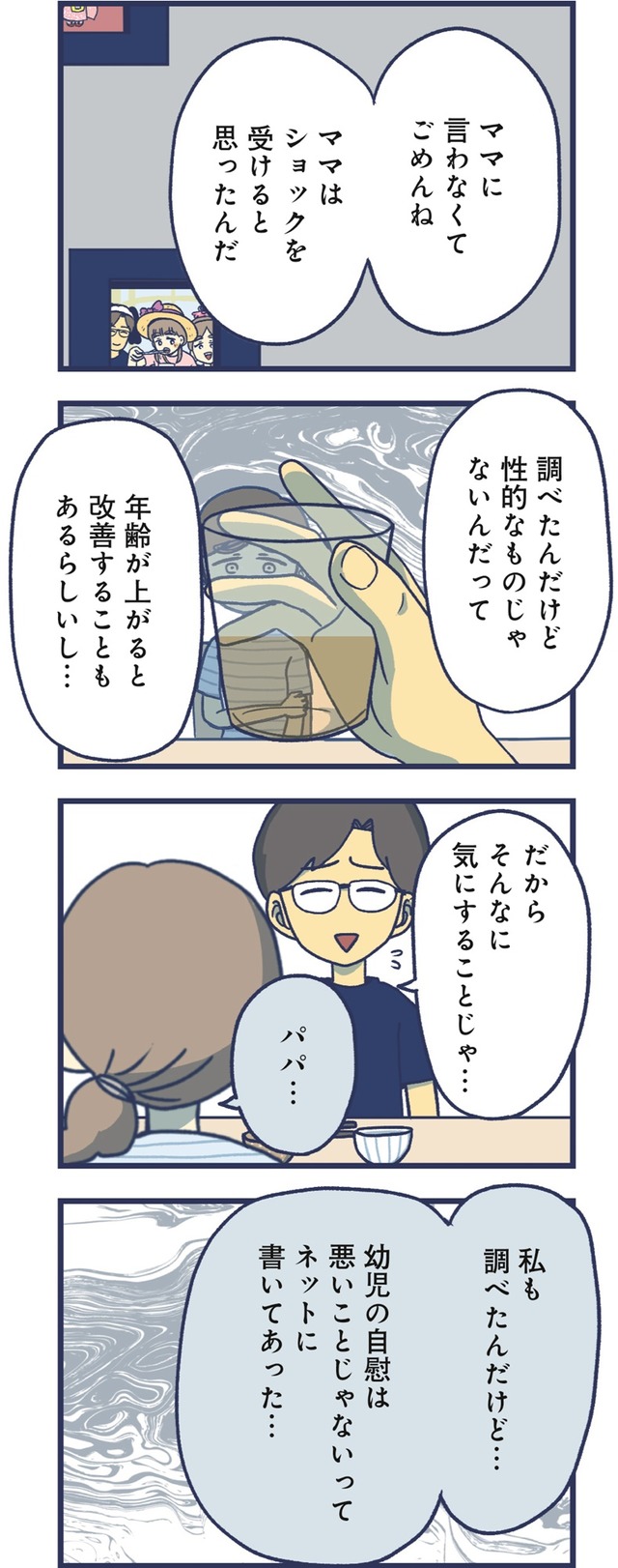 「4歳の娘が夢中でプライベートゾーンを触ってる」ついに夫に相談したけれど【やめられない娘と見守れない私 #8】