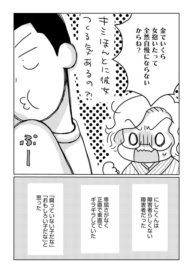 それなりに幸せに暮らしている、そう思っていたところへある日、「にしこ」と名乗る障害を持った青年が現れ、人生の歯車が突如大きく狂いだすことに…!?