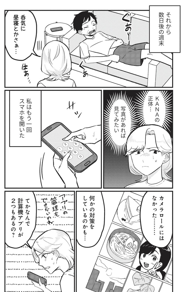 まさか夫が犯人…? ミヤコが夫のスマホを探ると、夫の「パパ活」が判明する。