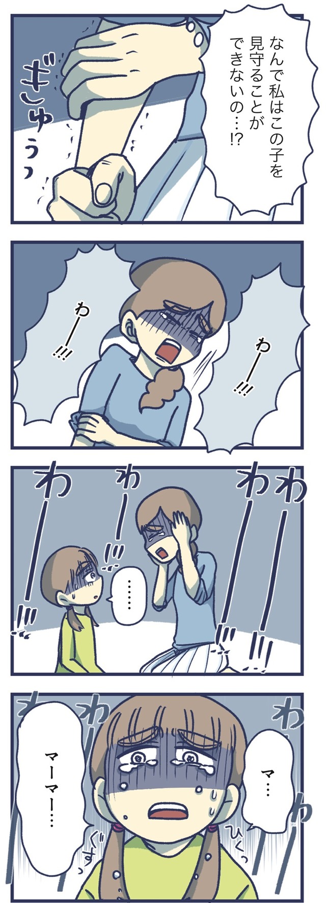 2人目を出産後、甘えてくるようになった4歳の長女。そんなある日、長女が自慰行為にふけっている現場を見てしまい、主人公は大きな衝撃を受けます。ネットで調べても「よくあること」「見守ってあげましょう」という言説ばかりで、母親の葛藤に寄り添うようなものは見当たりません。「娘が気持ち悪い」そう思ってしまう自分に苦しむ日々のなかで、徐々に追い詰められて……。今回は、幼すぎる性の目覚めに葛藤する母娘の苦しみを鮮烈に描いたコミックエッセイを特別抜粋でお届けします。