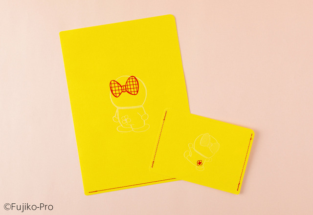 後ろ姿のドラミちゃんをワンポイントであしらった、ワックスペーパーファイルセットも登場。ロウ引きされた上質な紙製のファイルに、透明なレインボー箔がさりげなく光る大人っぽいデザインになっている。