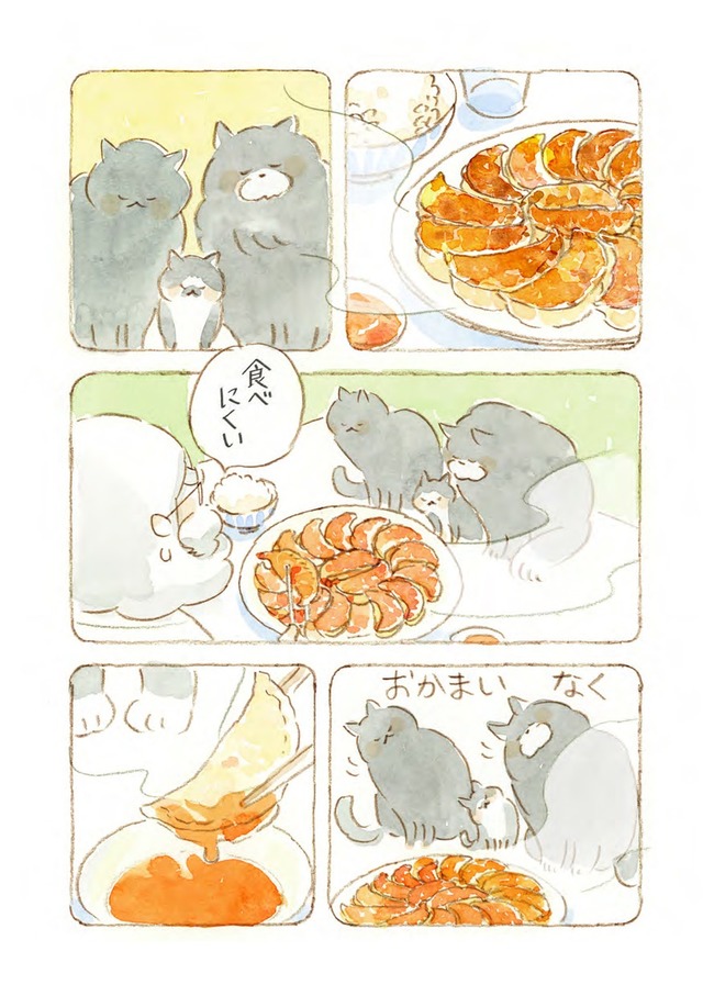 猫が見守る中で食べるニンニク3倍マシマシ餃子。真夜中に味わっているのは…!?【深夜3時のくろねこ喫茶 #6】