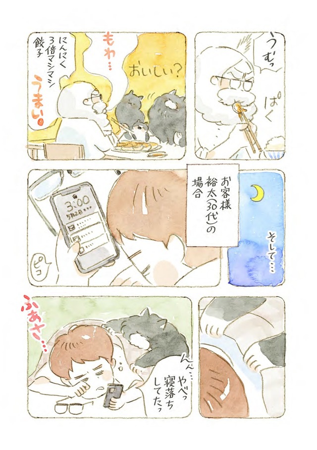 猫が見守る中で食べるニンニク3倍マシマシ餃子。真夜中に味わっているのは…!?【深夜3時のくろねこ喫茶 #6】 | NewsCafe