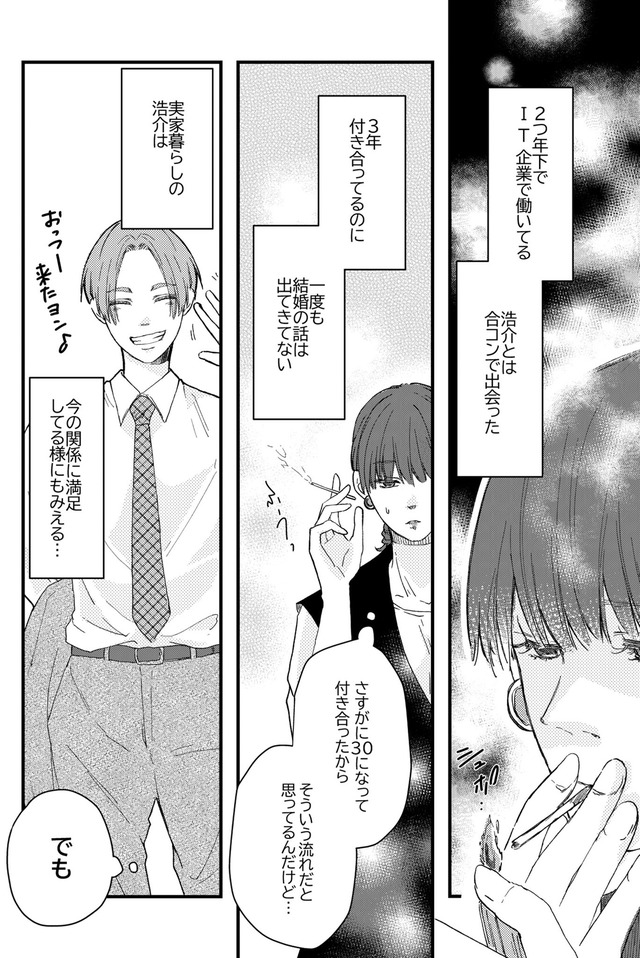 美容師のはるか(33)は、付き合って3年経つ彼氏の浩介(30)に、『結婚したい!』をはじめ、些細なことも口に出さずに言えない、モヤモヤを抱える日々を送っていた。