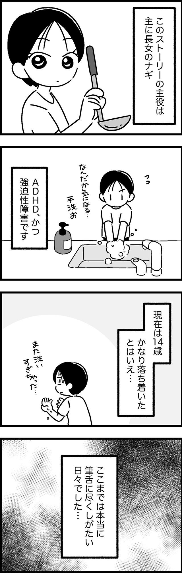 東京で4人の子どもと暮らしているライター・岡本ハナさん。長女はADHDと強迫性障害を併せ持っています。目標はあるけど高望みはしない…と、自分の目と手が届く範囲で奮闘する毎日をオトナサローネで連載中。発達障害児とそのきょうだいを育てるなかで、うれしいこと、つらいこと、悲しいことを赤裸々につづっています。人気連載をマンガ化!