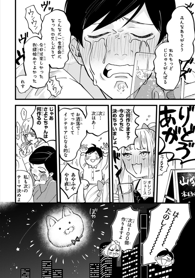 不器用さが愛おしく、手仕事で見つかる小さな達成感と温かい交流を描く。お疲れお兄さんの手芸はじめましてコメディ。