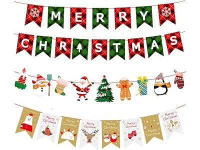 クリスマス 飾り クリスマス ガーランド Merry Christmas 可愛い クリスマス パーティー 装飾 飾り付け 壁飾り 両面 厚紙 紐が付き (3種類セット B)
