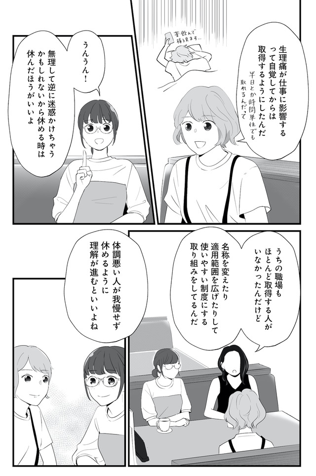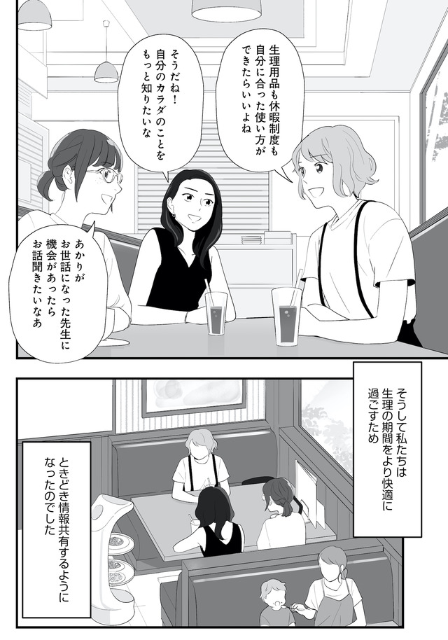 生理痛やPMSに苦しむあかり。通勤中、貧血で倒れて病院に運ばれたことをきっかけに、自分にあった生理用品や治療法を教えてもらうことに。