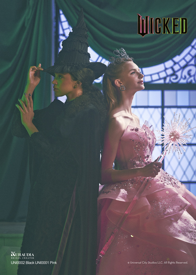 フォトプランでは「エルファバ」「グリンダ」などの劇中衣装をモチーフにしたオリジナルドレスを着用し、思い描くシーンを美しく切り取ることができる。細部まで作り込まれたスタジオセットと撮影アイテムにより、まるで映画『ウィキッド』シリーズ2作品の世界に入り込んだような没入感あふれるフォト体験が実現。