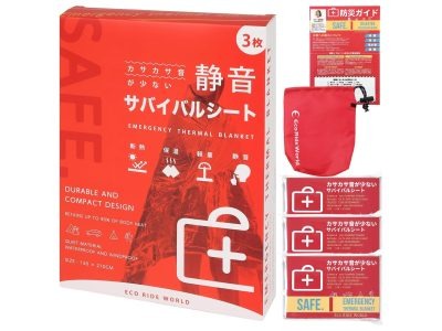 Eco Ride World アルミシート エマージェンシーシート カサカサ音が少ない 静音 ブランケット アルミブランケット サバイバルシート 備蓄 防災 保温 (3) sb_126-02