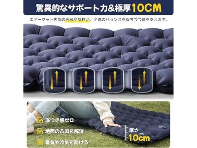 【エアーマット】極厚な10cm! 車中泊、避難所のかたい床も快適サポート。「足踏み式」エアポンプなので、30秒で簡単に膨らみます♪