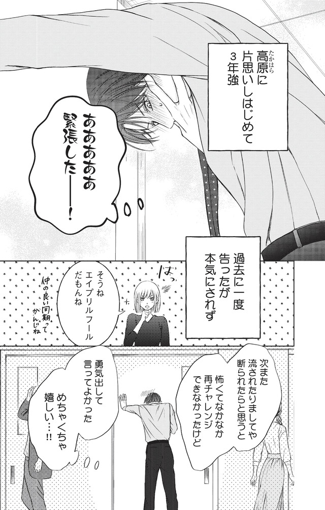 イケメン同期・小谷に悩みを打ち明けたところ、「男に慣れるために、試しに俺が付き合ってやろうか?」とまさかの提案が!