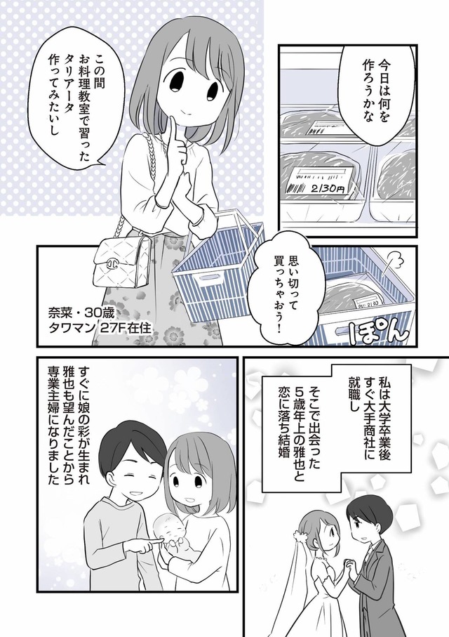 誰もが憧れるタワマンに、夫と5歳の娘と住む奈菜。