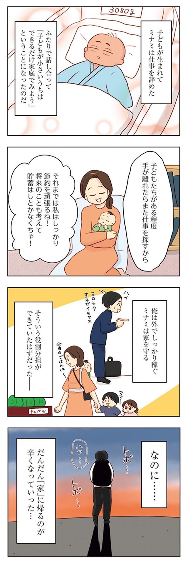 夫と3人の子どもと幸せに暮らしていた兼業主婦のミナミ。
