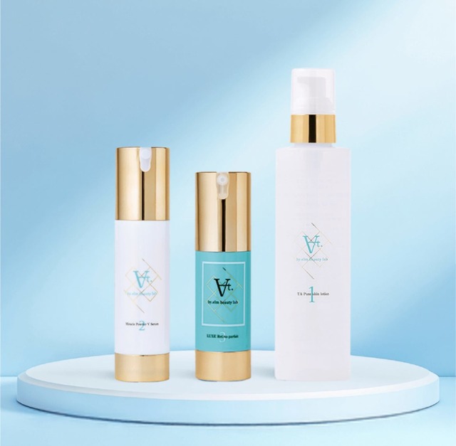 左から:ゆきなさんイチオシのミラクルパウダーVセラム、リュクスレチノパフェ、TAピュアスキンローション