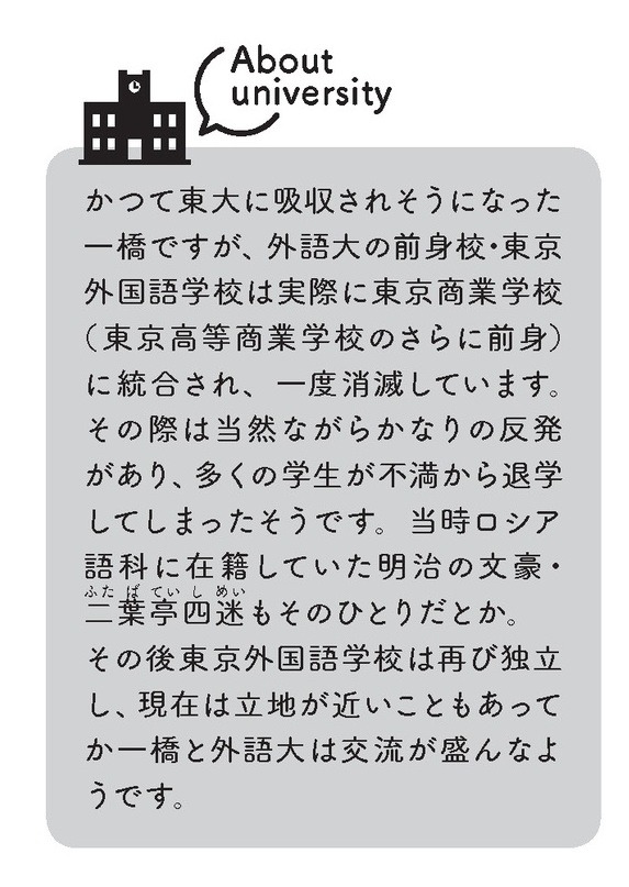 どの大学がどんな“クセ”を持つ? 首都圏・関西の国公立から私立、旧帝・理系・女子大・芸術大まで計70校をユニークに擬人化。ブログで話題を呼んだ連作が大幅加筆&描き下ろし多数で待望の書籍化。志望校や出身校の“あるある”を探してみよう!学風や学部、学食、キャンパス事情まで全方位の“あるある”ネタ満載。受験生も卒業生も楽しめる読み応えの一冊。