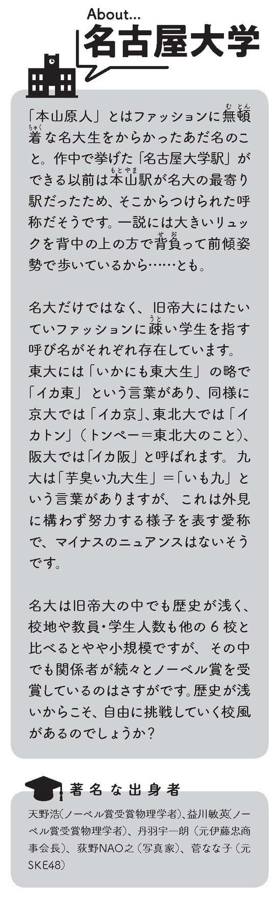 どの大学がどんな“クセ”を持つ? 首都圏・関西の国公立から私立、旧帝・理系・女子大・芸術大まで計70校をユニークに擬人化。ブログで話題を呼んだ連作が大幅加筆&描き下ろし多数で待望の書籍化。志望校や出身校の“あるある”を探してみよう!学風や学部、学食、キャンパス事情まで全方位の“あるある”ネタ満載。受験生も卒業生も楽しめる読み応えの一冊。