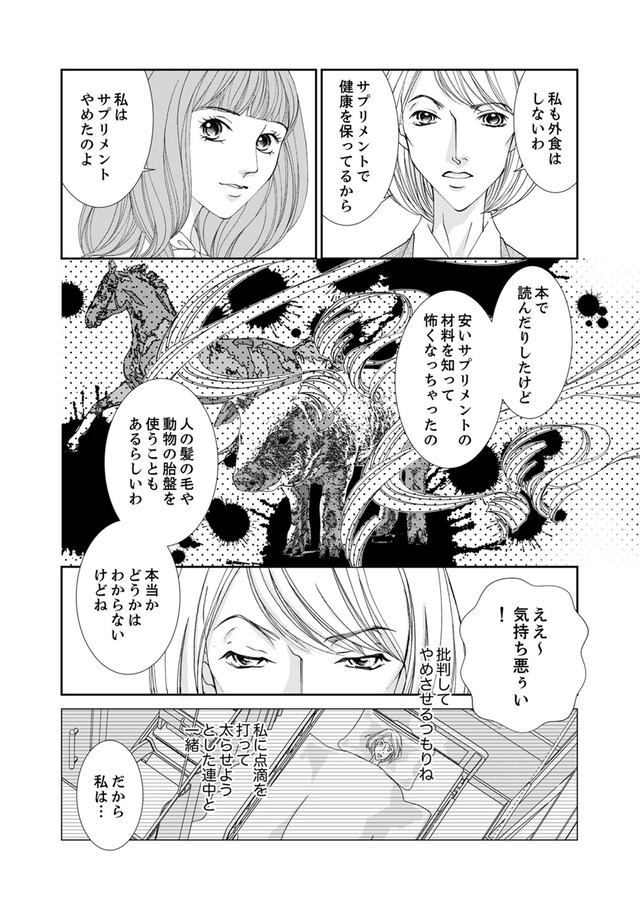 同僚のななみは、仕事ができず体型も自堕落。それなのに男が切れないことにイラつく主人公の礼子。ななみが礼子の想い人である上司を狙ってダイエットを始めたと知り、礼子は「あいつより絶対スリムに…!」という執念でサプリを荷重接収することに。女性の執念と嫉妬が導く衝撃の結末とは?