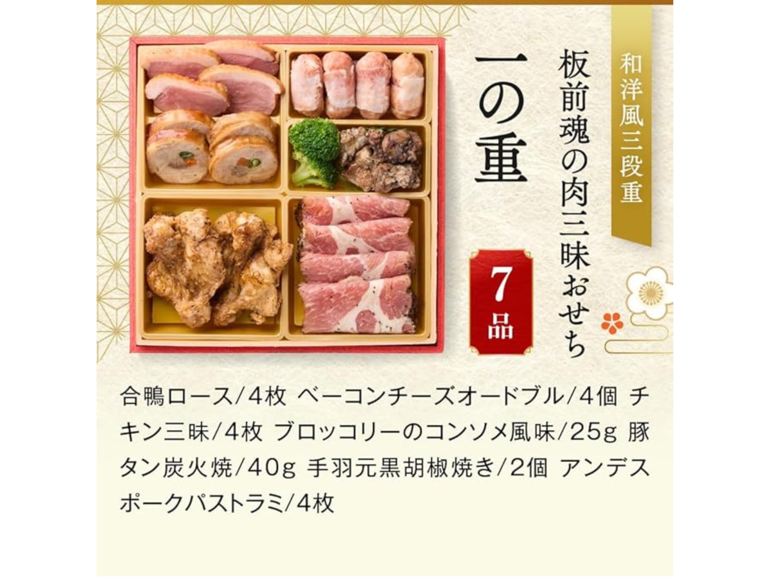 (12月31日着) 板前魂の肉三昧おせち 板前魂 肉おせち 和洋風 ローストビーフステーキ 豚角煮 ユッケ風ローストビーフ 生ハム付 3人前 30品目