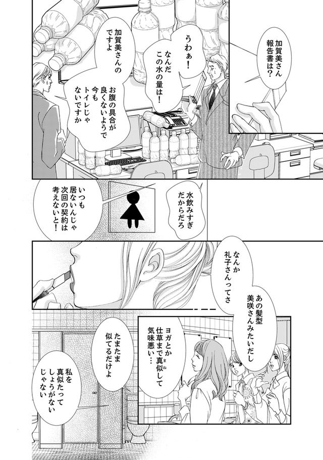 同僚のななみは、仕事ができず体型も自堕落。それなのに男が切れないことにイラつく主人公の礼子。ななみが礼子の想い人である上司を狙ってダイエットを始めたと知り、礼子は「あいつより絶対スリムに…!」という執念でサプリを荷重接収することに。女性の執念と嫉妬が導く衝撃の結末とは?