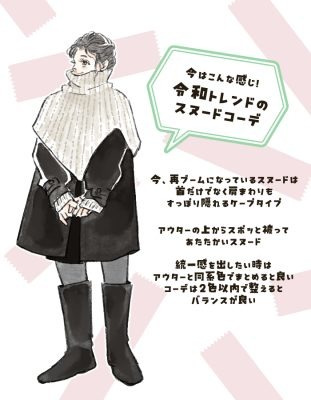 大きなポイントは丸い輪っか状ではなくなったというところです。進化版スヌードはケープのように首から肩、胸元にかけてを覆う大判タイプのデザイン。