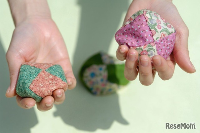道具:お手玉、ふわふわのお手玉など数種類のお手玉がたくさん